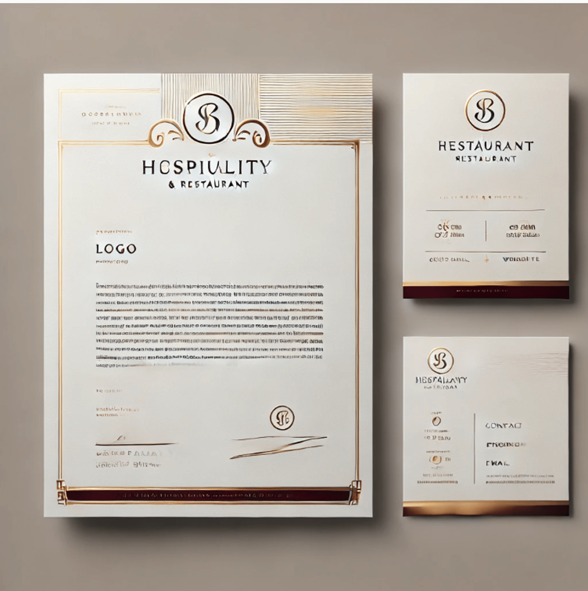 luxueuse et professionnelle avec des couleurs profondes comme le bordeaux et l'or, et une typographie élégante.